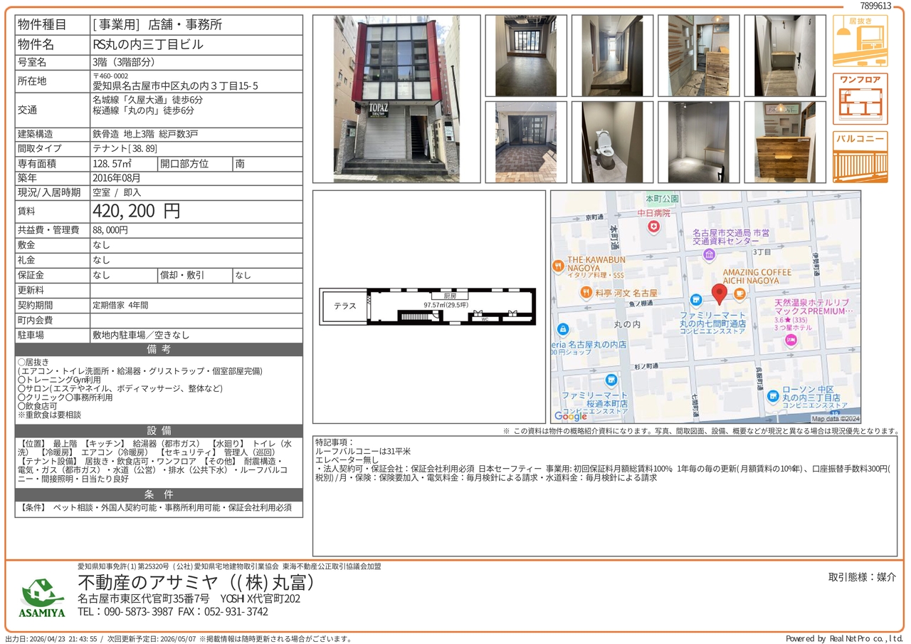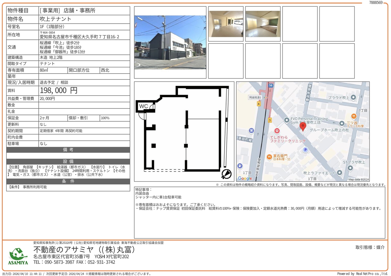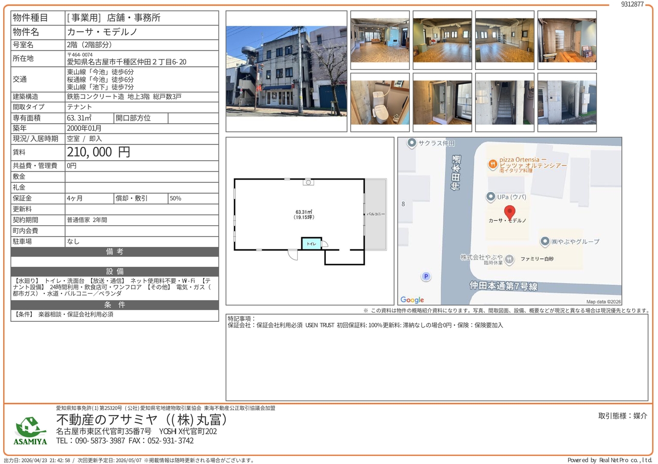 ⑦千種区山門町2丁目 (17.93坪) ・賃料20.57万円 【覚王山駅1分】 ・駅近!徒歩1分 ・前業種アロマサロン ・残置設備あり お問合せ電話(不動産のアサミヤ) TEL:052-931-3746 |