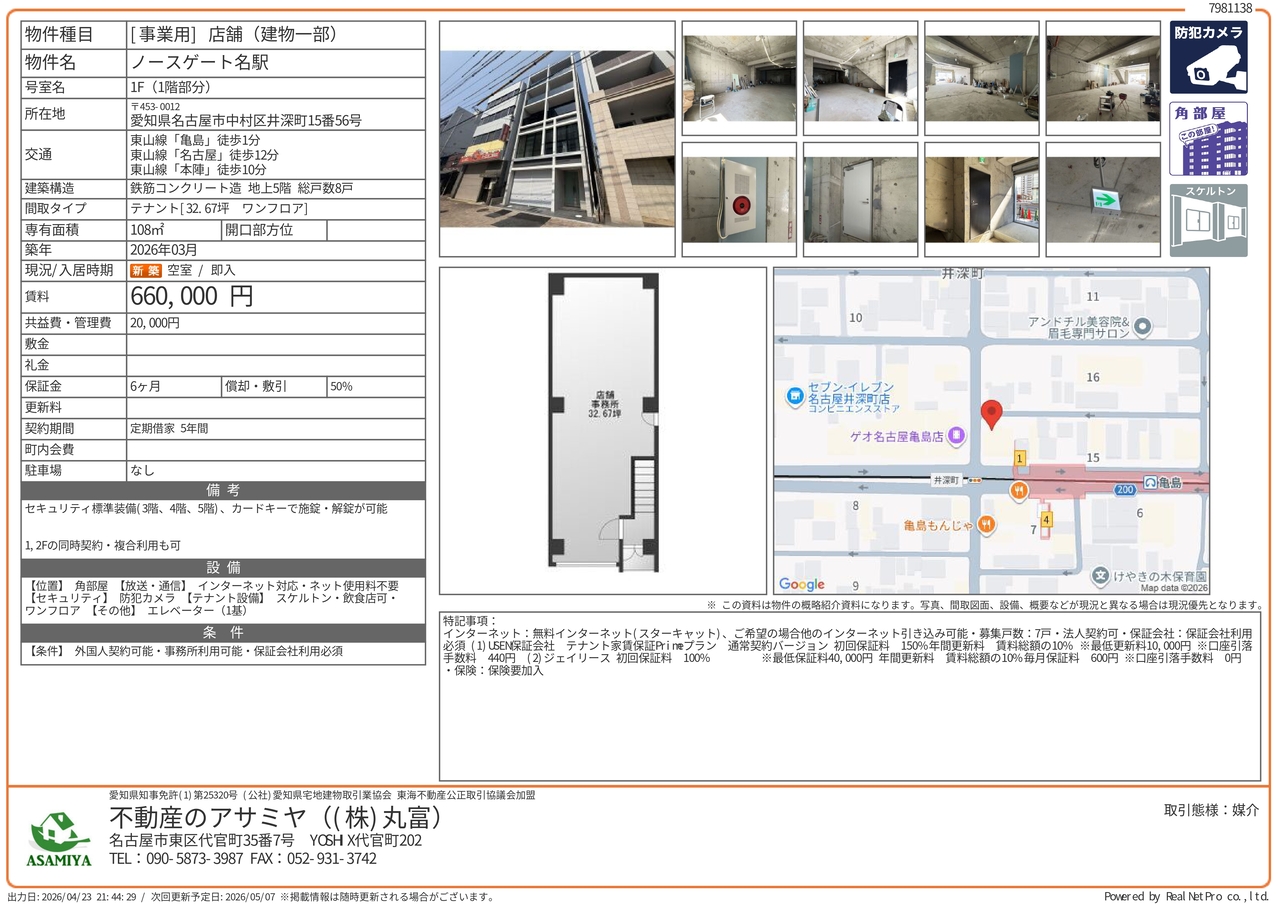 ・賃料36.47万円 【名古屋駅4分】 ・2026年1月新築 ・10/1~2階フロア内覧可 ・他階層も募集中 お問合せ電話(不動産のアサミヤ) TEL:052-931-3746 |